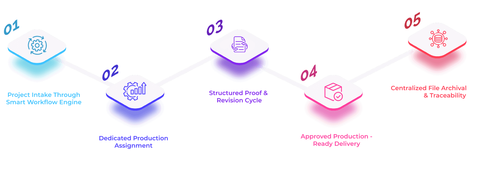 We specialize in production-ready execution at scale - backed by disciplined workflow systems, structured approval mechanisms, version-controlled file management, and production teams trained to deliver consistent, specification-accurate creative assets.